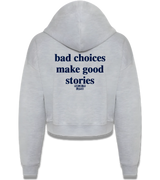 "BAD CHOICES MAKE GOOD STORIES" Cropped Zip Hoodie