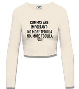 "COMMAS ARE IMPORTANT NO MORE TEQUILA NO, MORE TEQUILA" Cropped Longsleeve