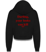 "DARLING, YOUR LOOKS CAN KILL" Cropped Zip Hoodie