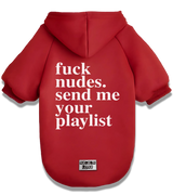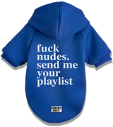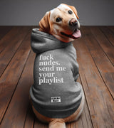 "FUCK NUDES. SEND ME YOUR PLAYLIST" Pet Hoodie