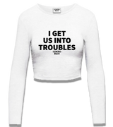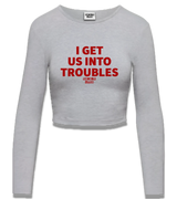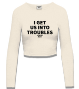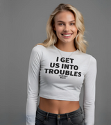 "I GET US INTO TROUBLES" Cropped Longsleeve