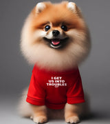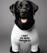 "I GET US INTO TROUBLES" Pet T-Shirt
