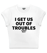 "I GET US OUT OF TROUBLES" Status Baby Tee