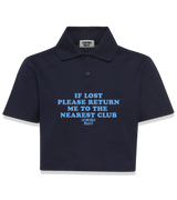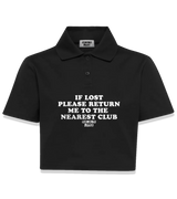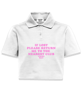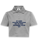 "IF LOST PLEASE RETURN ME TO THE NEAREST CLUB" Polo Crop Top
