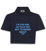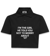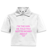 "I'M THE GIRL HE TOLD YOU NOT TO WORRY ABOUT" Polo Crop Top