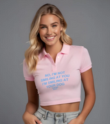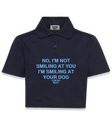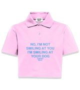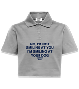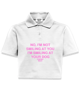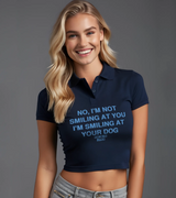 "NO, I'M NOT SMILING AT YOU I'M SMILING AT YOUR DOG" Polo Crop Top