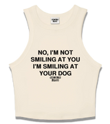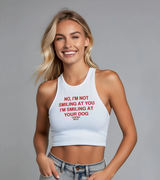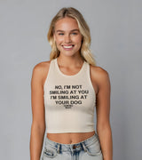"NO, I'M NOT SMILING AT YOU I'M SMILING AT YOUR DOG" Tank Crop Top