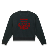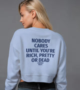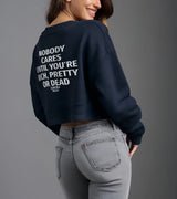 "NOBODY CARES UNTIL YOU'RE RICH, PRETTY OR DEAD" Cropped Sweatshirt