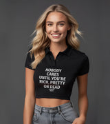 "NOBODY CARES UNTIL YOU'RE RICH, PRETTY OR DEAD" Polo Crop Top