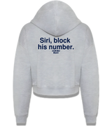 "SIRI, BLOCK HIS NUMBER" Cropped Zip Hoodie
