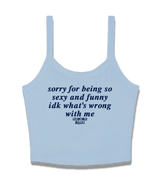 "SORRY FOR BEING SO SEXY AND FUNNY IDK WHAT'S WRONG WITH ME" Cami Crop Top