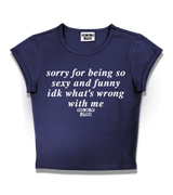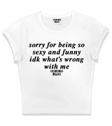 "SORRY FOR BEING SO SEXY AND FUNNY IDK WHAT'S WRONG WITH ME" Status Baby Tee
