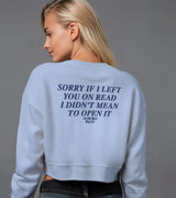 "SORRY IF I LEFT YOU ON READ I DIDN'T MEAN TO OPEN IT" Cropped Sweatshirt