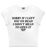 "SORRY IF I LEFT YOU ON READ I DIDN'T MEAN TO OPEN IT" Status Baby Tee