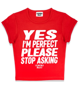"YES I'M PERFECT PLEASE STOP ASKING" Status Baby Tee